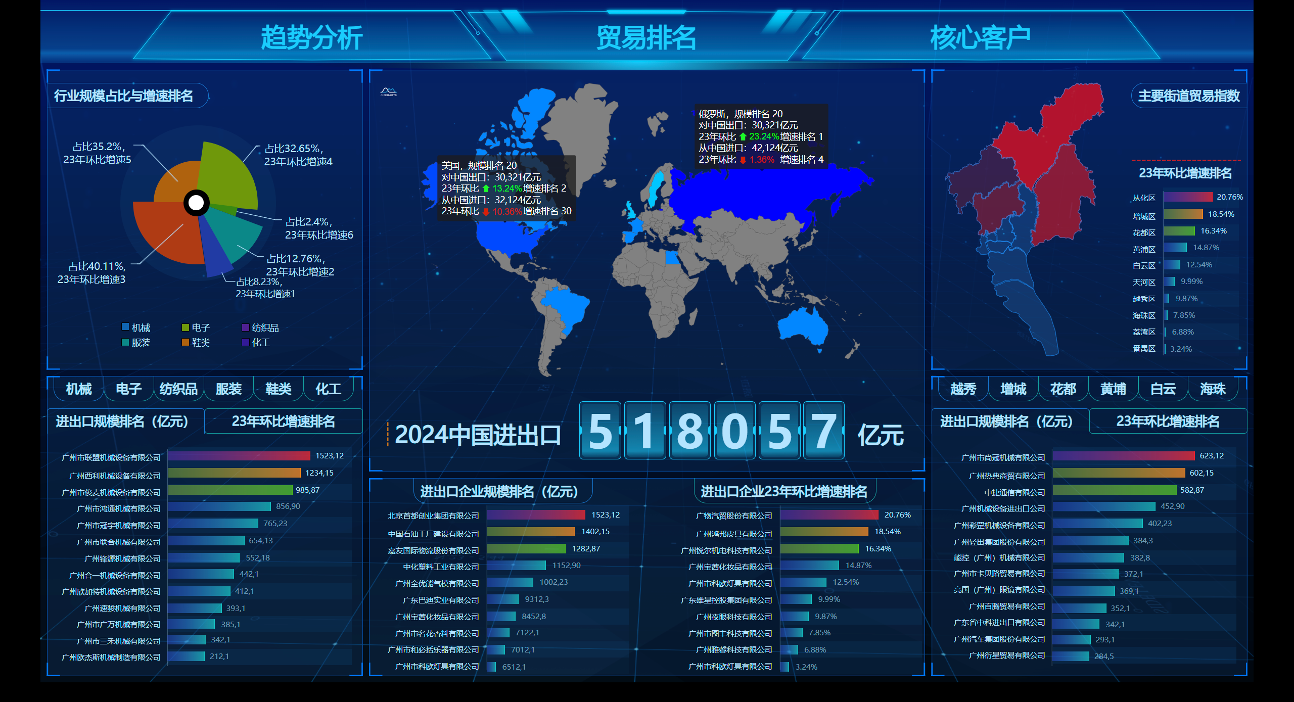 政务赋能:Atlas跨企查的全球贸易数据看板功能,可帮助当地政府监测本土外贸企业实时的进出口产值、进出口趋势、进出口国家、全球贸易图谱等维度的数据,并对政府制定相应政策,提供真实有效数据作为支撑。